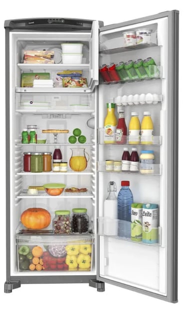 Modelo grande com freezer embaixo, ideal para famílias maiores.
